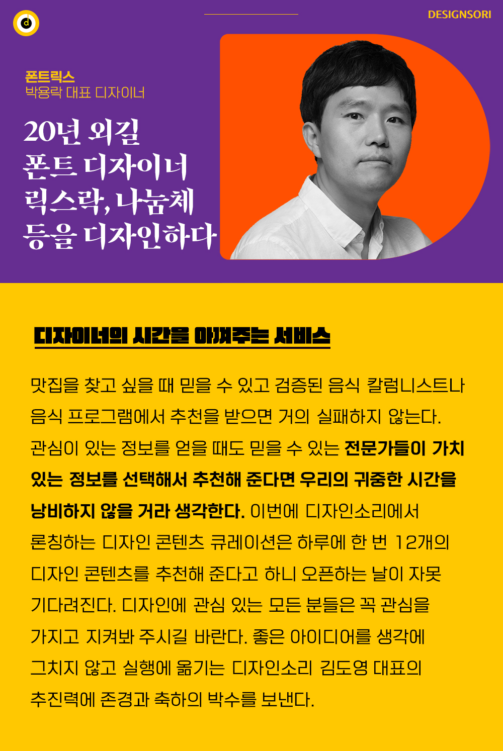 디자인소리는 디자인을 말하고, 디자인을 듣는 가장 이상적인 미디어를 지향합니다. 우리는 디자인을 시각적 결과물로만 소비하는 것을 넘어, 그 뒤에 숨겨진 맥락과 목소리를 깊이 있게 탐구합니다. 그 과정에서 가장 강력하고 정직한 전달 수단은 텍스트라고 믿습니다. 텍스트는 이미지가 전하지 못하는 사유의 깊이와 시간의 무게를 담아낼 수 있으며, 디자이너의 철학과 창작의 여정을 왜곡 없이 기록합니다.