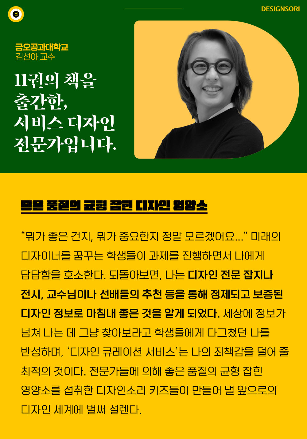 우리는 빠르게 소비되는 트렌드의 속도에 휩쓸리지 않고, 느리지만 단단한 기록을 통해 디자인의 본질을 보존합니다. 그렇게 남겨진 기록은 단순한 데이터가 아닌, 시대와 세대를 잇는 문화적·창작적 유산이 됩니다. 디자인소리는 오늘의 목소리를 내일의 역사로 남기며, 디자인이 가진 가치가 세대를 넘어 영속하도록 하는 일을 멈추지 않을 것입니다.