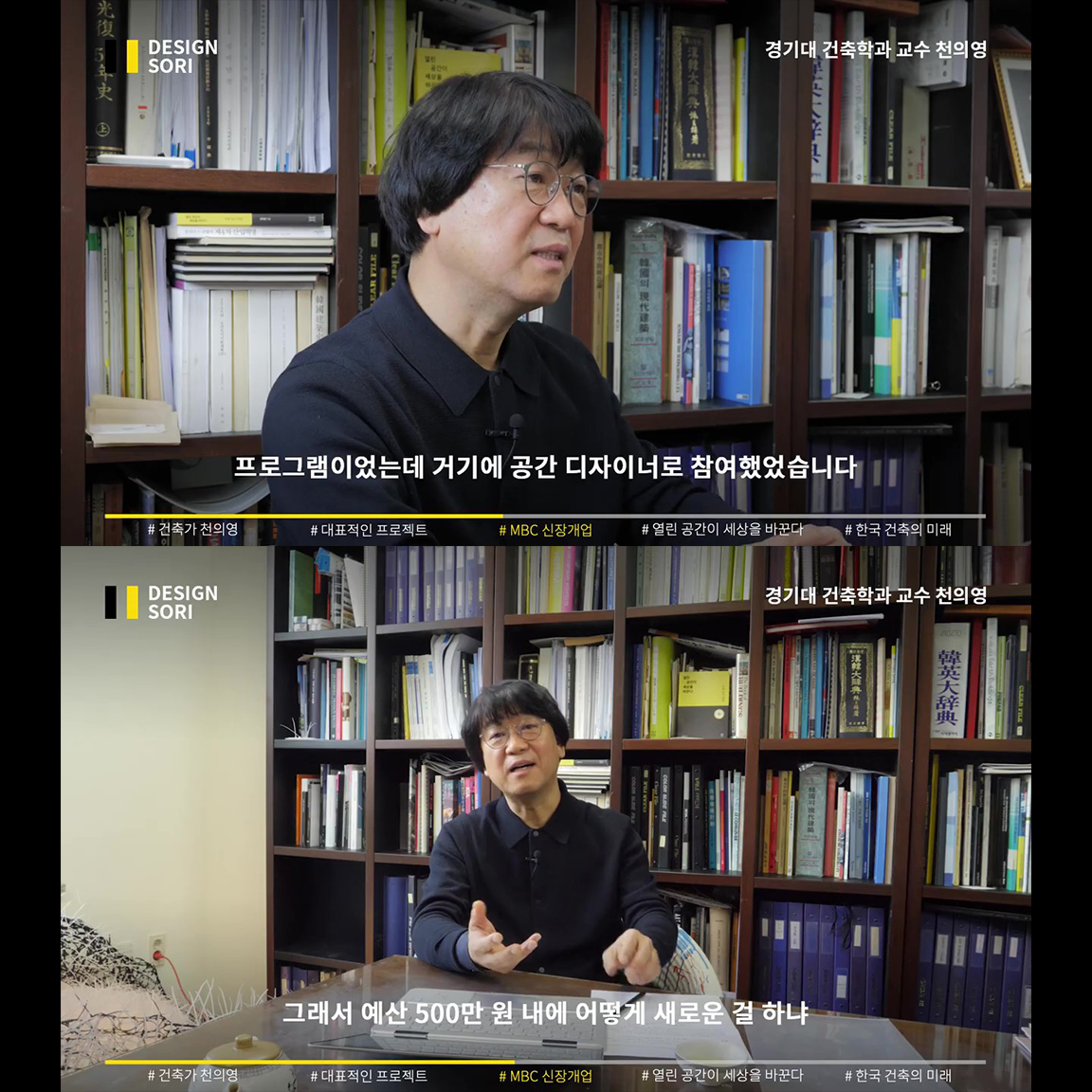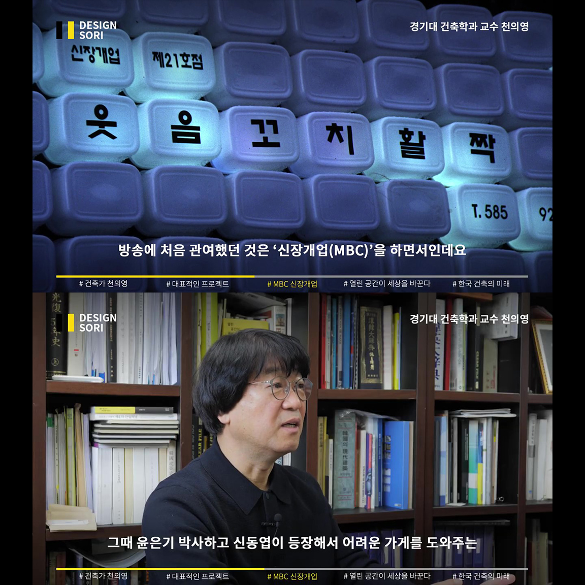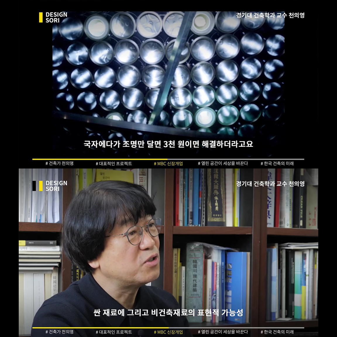 사회적 기여 방송 MBC ‘신장개업’과 ‘러브하우스’에서, 독특하고 도전적인 인테리어로 늘 새로운 공간 디자인을 보여준 천의영 건축가. 베네치아부터 영국의 산업혁명까지 지난 400년의 역사는 열린 공간의 역사라고 말하는 천의영 교수의, 한국 건축과 디자인의 미래 그리고 우리의 역할 이야기.