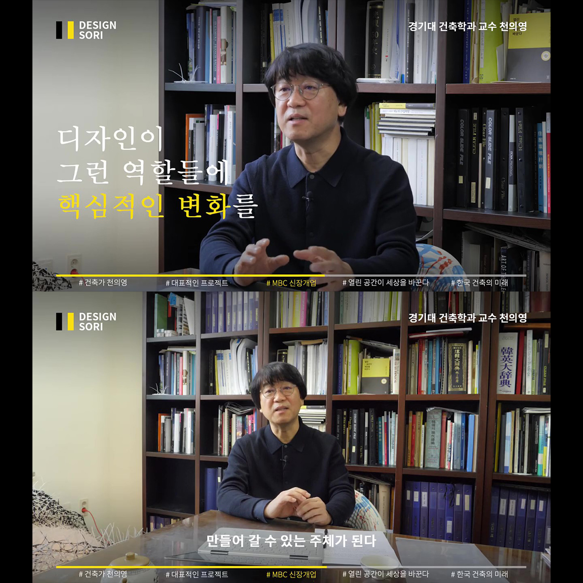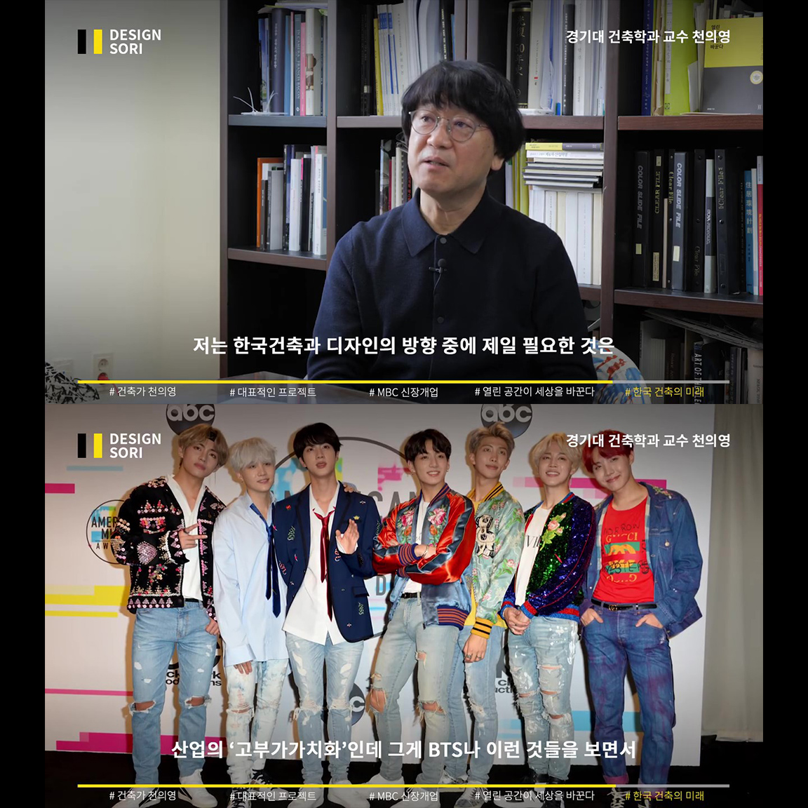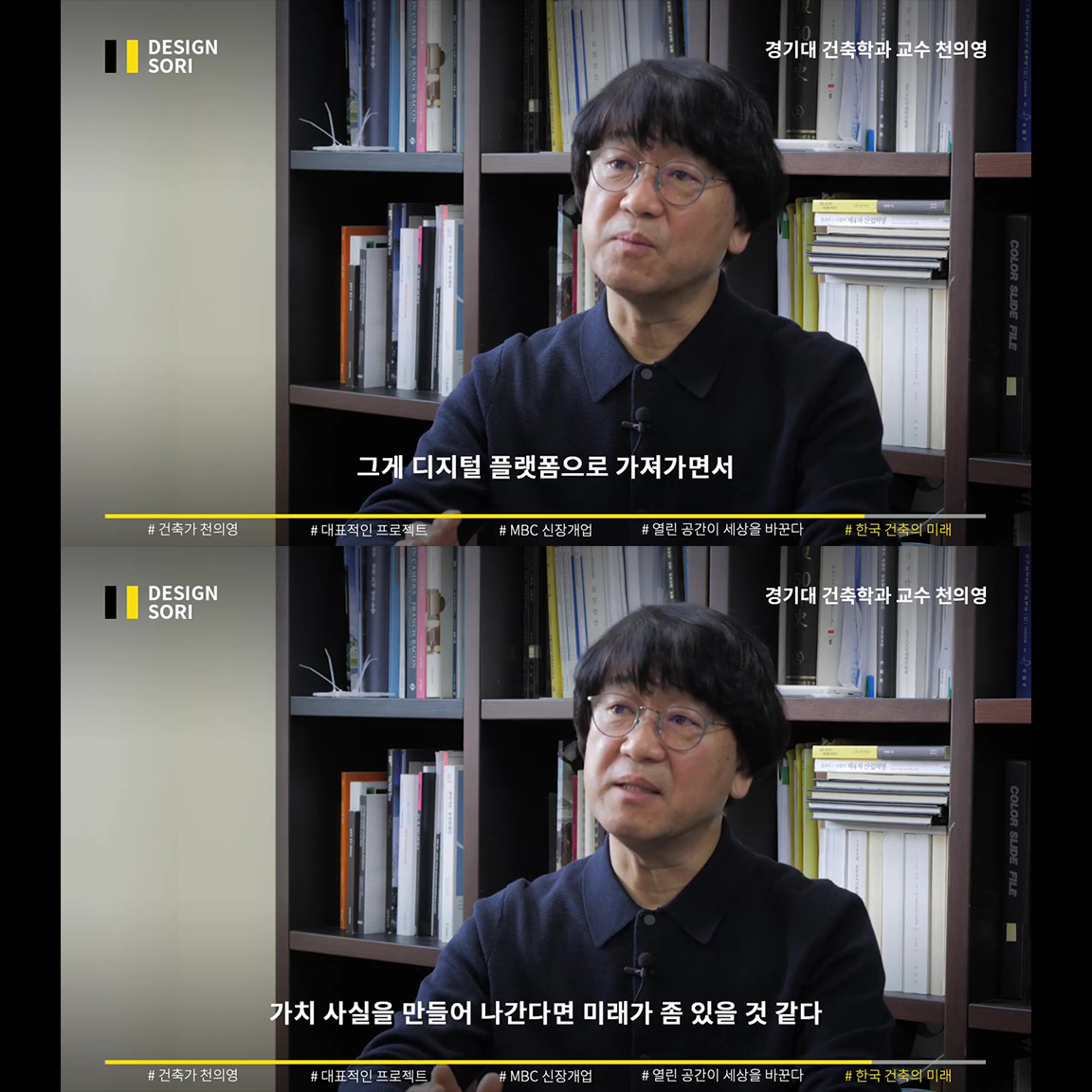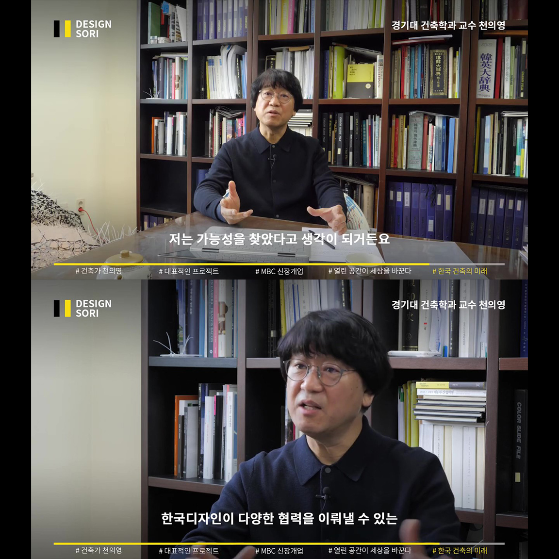 사회적 기여 방송 MBC ‘신장개업’과 ‘러브하우스’에서, 독특하고 도전적인 인테리어로 늘 새로운 공간 디자인을 보여준 천의영 건축가. 베네치아부터 영국의 산업혁명까지 지난 400년의 역사는 열린 공간의 역사라고 말하는 천의영 교수의, 한국 건축과 디자인의 미래 그리고 우리의 역할 이야기.