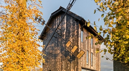 폴란드 시골에 있는 한 폭의 그림 같은 풍차 하우스