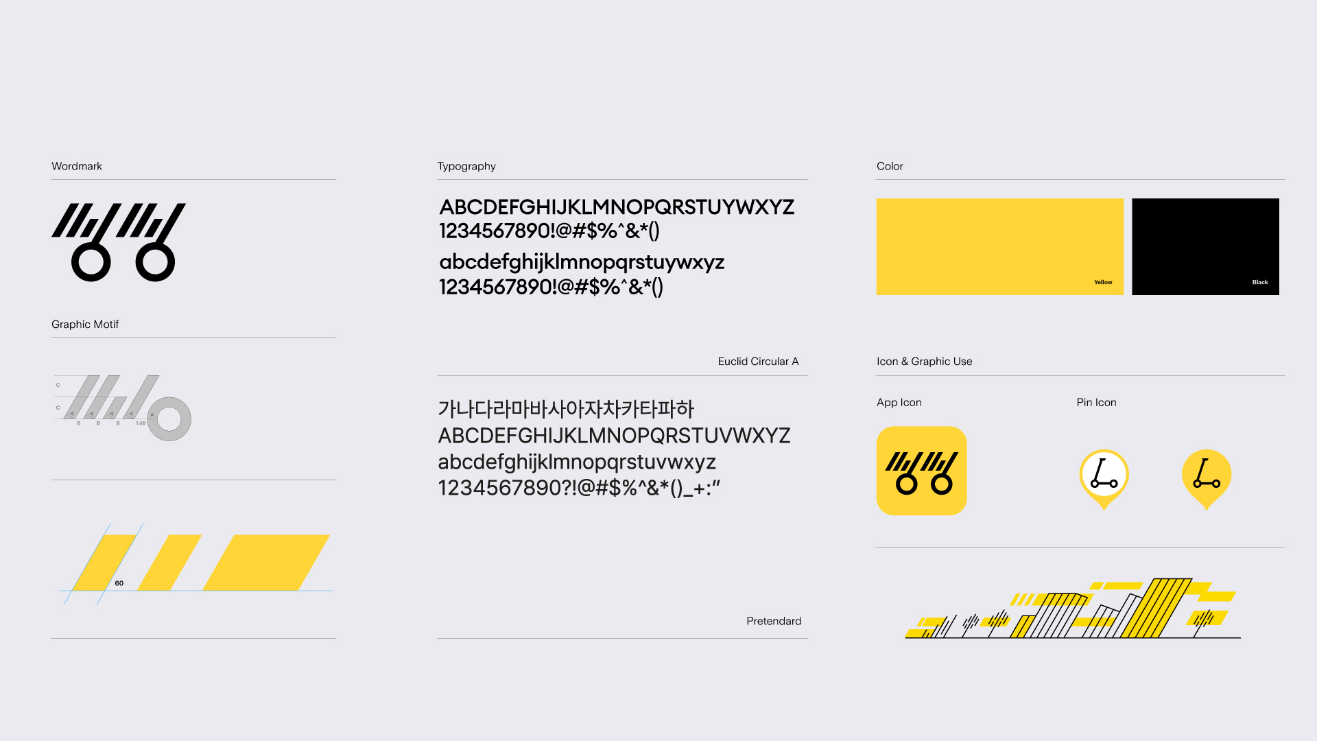 두 번째는 ‘씽씽’ 리브랜딩 프로젝트입니다. 2019년에 브랜드 에셋을 새롭게 만들었던 프로젝트인데, 5년이 지난 2023년 확장된 사업에 맞는 비전 체계 및 슬로건 등 버벌 아이덴티티와 새로운 브랜드 웹사이트를 재구축하게 되었습니다. 씽씽 또한 인뎁스 인터뷰를 통해 사업 확장 방향과 브랜드 지향점을 추출할 수 있었죠. 당시 씽씽은 이동 대여 외에도 앱 접속에 관한 경험 요소를 더해주는 사업 모델이 개발 중이었는데, 우리는 비전 체계 및 핵심 가치와 브랜드 커뮤니케이션 스타일의 방향성 설정을 주요 어젠다로 잡고 프로젝트를 시작했습니다. 모빌리티 산업의 주요 브랜드들의 버벌과 사업 방향성 커뮤니케이션에 대한 리서치와 분석을 통해 차별점과 강점을 찾고, 주요 내용과 표현 방식(ToV)을 종합적으로 고려하여 시안을 개발하였습니다. 핵심 가치는 Safety First, Clean City, Life Connector이며, 브랜드 슬로건은 ‘Good Move, Better Life’로 최종 개발하게 되었습니다. Verbal identity를 토대로 브랜드 스토리와 웹사이트 개발을 완성하며 프로젝트를 마칠 수 있었습니다.