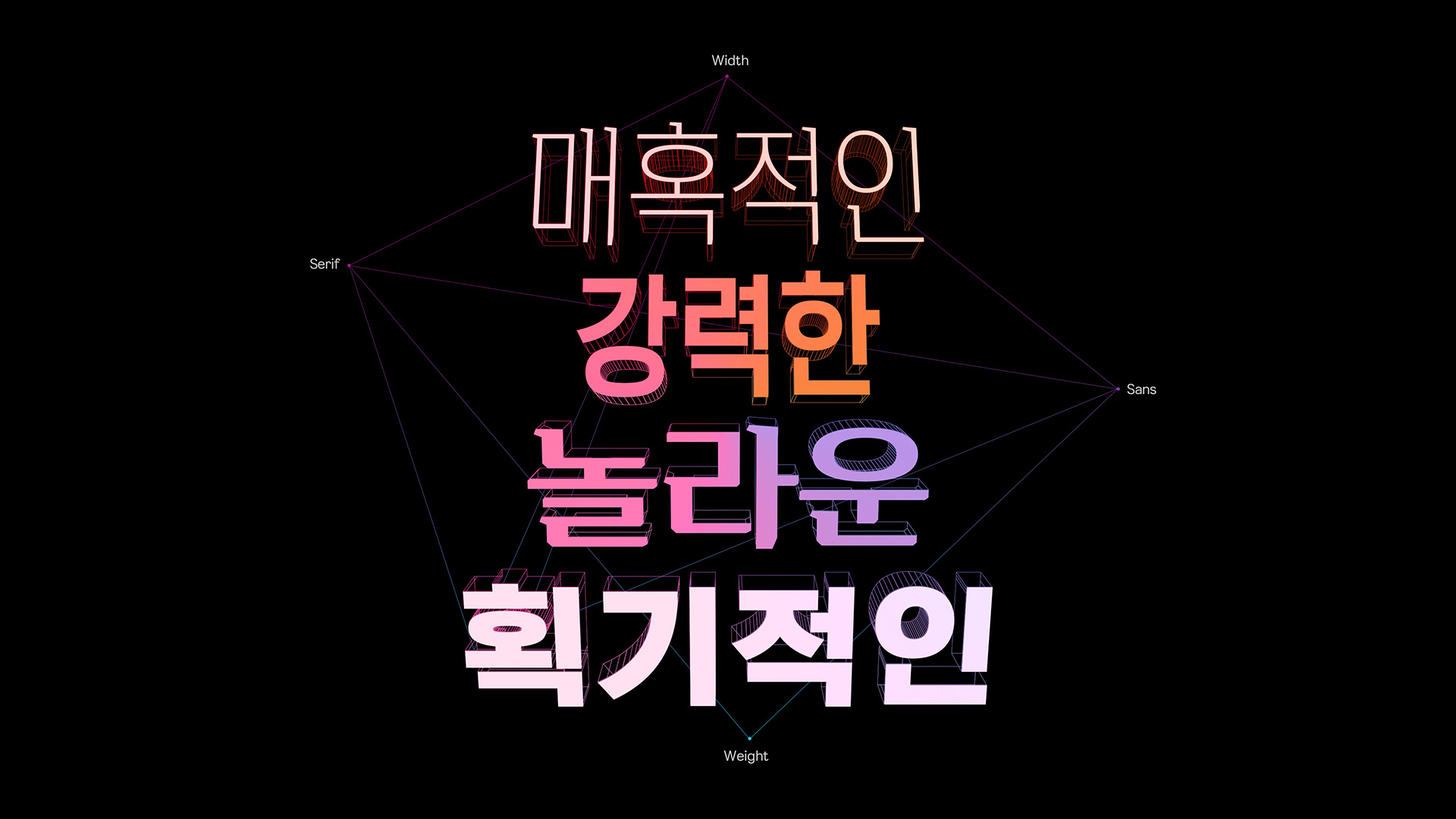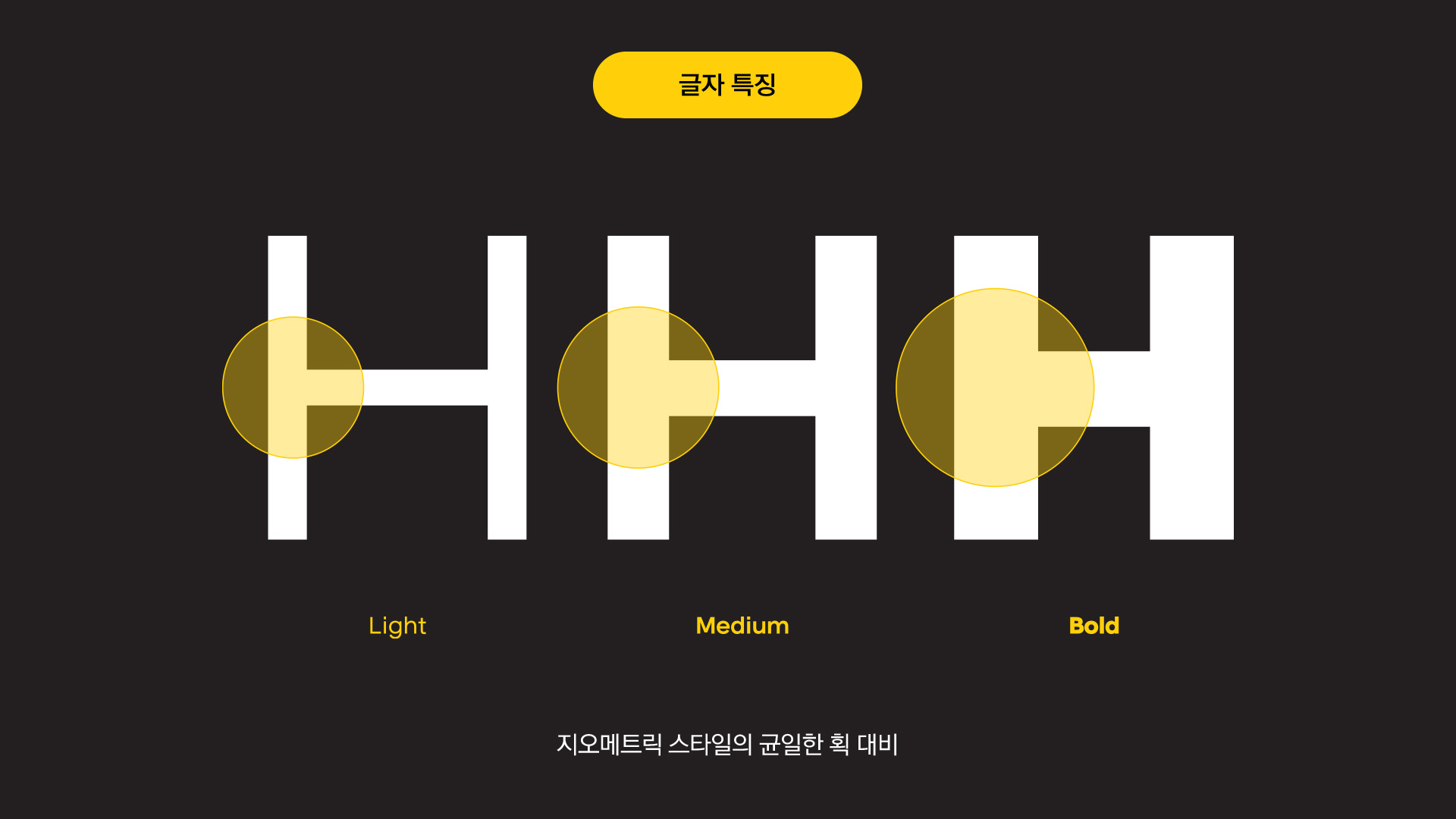 영문 산세리프 서체는 크게 그로테스크 산스, 네오그로테스크 산스, 지오메트릭 산스의 세 가지 형태로 분류됩니다. 이 중 지오메트릭 산스는 형태가 가장 도식적이며 모던한 느낌을 제공합니다. 반면, 그로테스크 및 네오그로테스크 산스는 가독성 측면에서 뛰어납니다. K-디자인 어워드 전용 서체 개발 시, 이 두 가지 스타일의 장점을 통합하여 네오그로테스크 산스의 우수한 가독성과 지오메트릭 산스의 현대적인 모던함을 결합한 최적화된 아이덴티티를 창출하고자 했습니다.