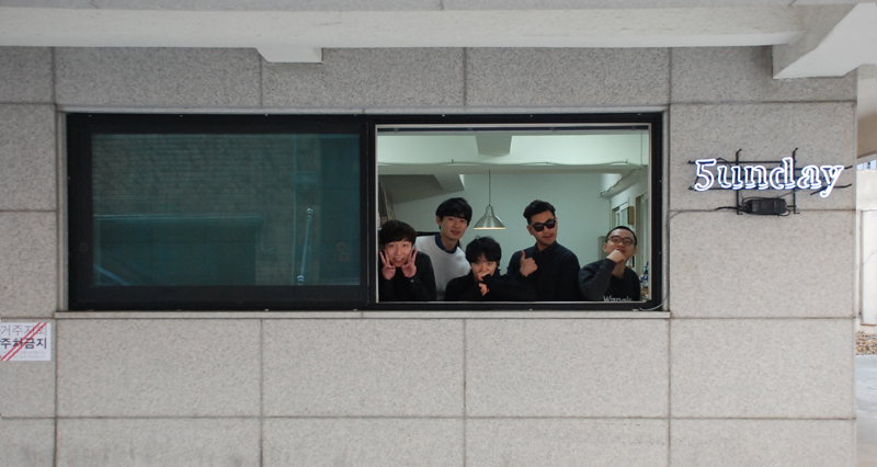 참 많이 듣는 질문인데요! 그만큼 궁금증을 유발하고자 했던 의도가 적중한 것 같아 소소한 짜릿함을 느낍니다. 저희는 5명이 공동대표로 있는 스튜디오입니다. 처음부터 사업을 목적으로 한 모임은 아니었습니다. 소소하게 일요일(sunday)마다 만나서 뭐 재밌는 일 없나 고민하던 5명이었는데, 그래서 sunday에 s대신 숫자 5를 넣게 되었습니다. 지금은 이것이 화근이 되어 토요일, 일요일 빼고 거의 매일 보는 사이가 되었습니다. 하지만 후회하지 않습니다.