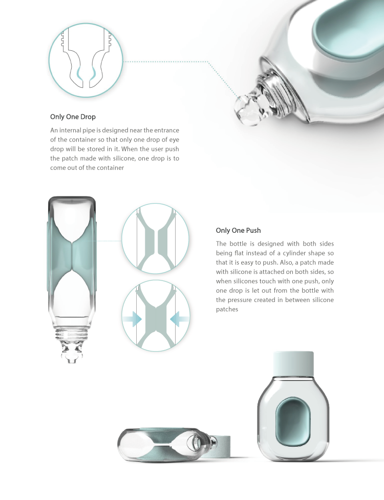 감사합니다. 스파크에서 상을 받은 작품은 one drop이라는 안약 용기 디자인입니다. 안약을 투여할 때 정확한 타이밍에 정확한 양을 투여할 수 있다면 좀 더 쉬운 투여가 가능할 것 같다는 아이디어로 안약 용기를 디자인하였습니다. 일상적이고 작은 제품이지만, 그 속에 녹아있는 많은 고민과 가치를 알아봐 주셨기에 이렇게 큰 상을 받게 된 것 같아 감사한 마음이 들었습니다.