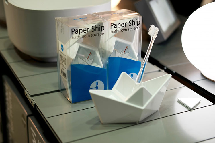 ▲ 종이배 수납함(Paper Ship)은 누구에게나 보편적인 향수를 일으키는 오브제인 종이배로 욕실 공간에 아날로그적인 감성을 불어 넣어줍니다.