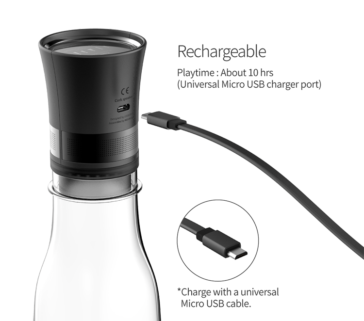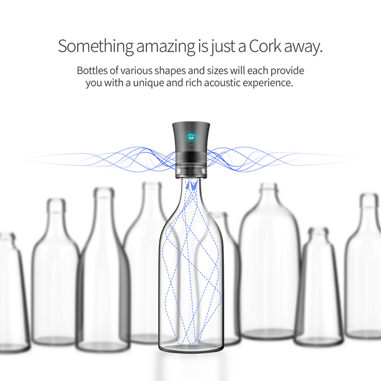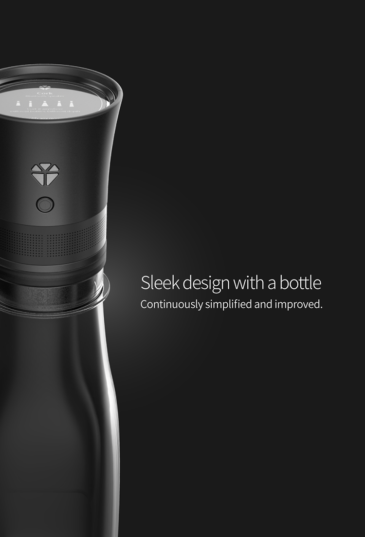 "그럼 대체 소리의 차이가 나는 이유가 뭘까?" 생각하다가 "비어있는 공간이 울림통 역할을 하는구나, 그래서 모든 음역의 소리를 낼 수 있구나"를 깨닫게 됐습니다. 문제는 울림통이 필요한데 사람들이 큰 스피커를 들고 다닐 수는 없잖아요. ‘작지만 넓은 음역를 낼 방법이 없을까’를 생각하다가 주변에서 쉽게 구할 수 있는 병을 울림통으로 사용하자는 생각을 했습니다. 병이 울림통 역할을 하니까 그에 어울리게 디자인을 코르크 마개로 하고 이름도 ‘Cork speaker’라고 짓게 되었습니다.